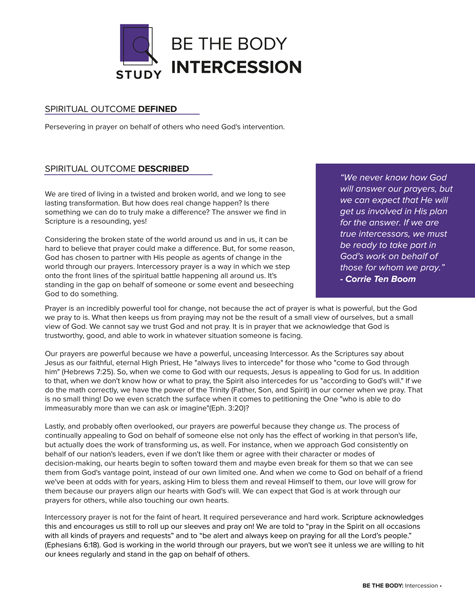 This Bible study gives a holistic look through Scripture at the Serve outcome. Engage thought provoking questions for individual reflection and then discuss them in your Life Group or Spiritual Running Partner relationships.
